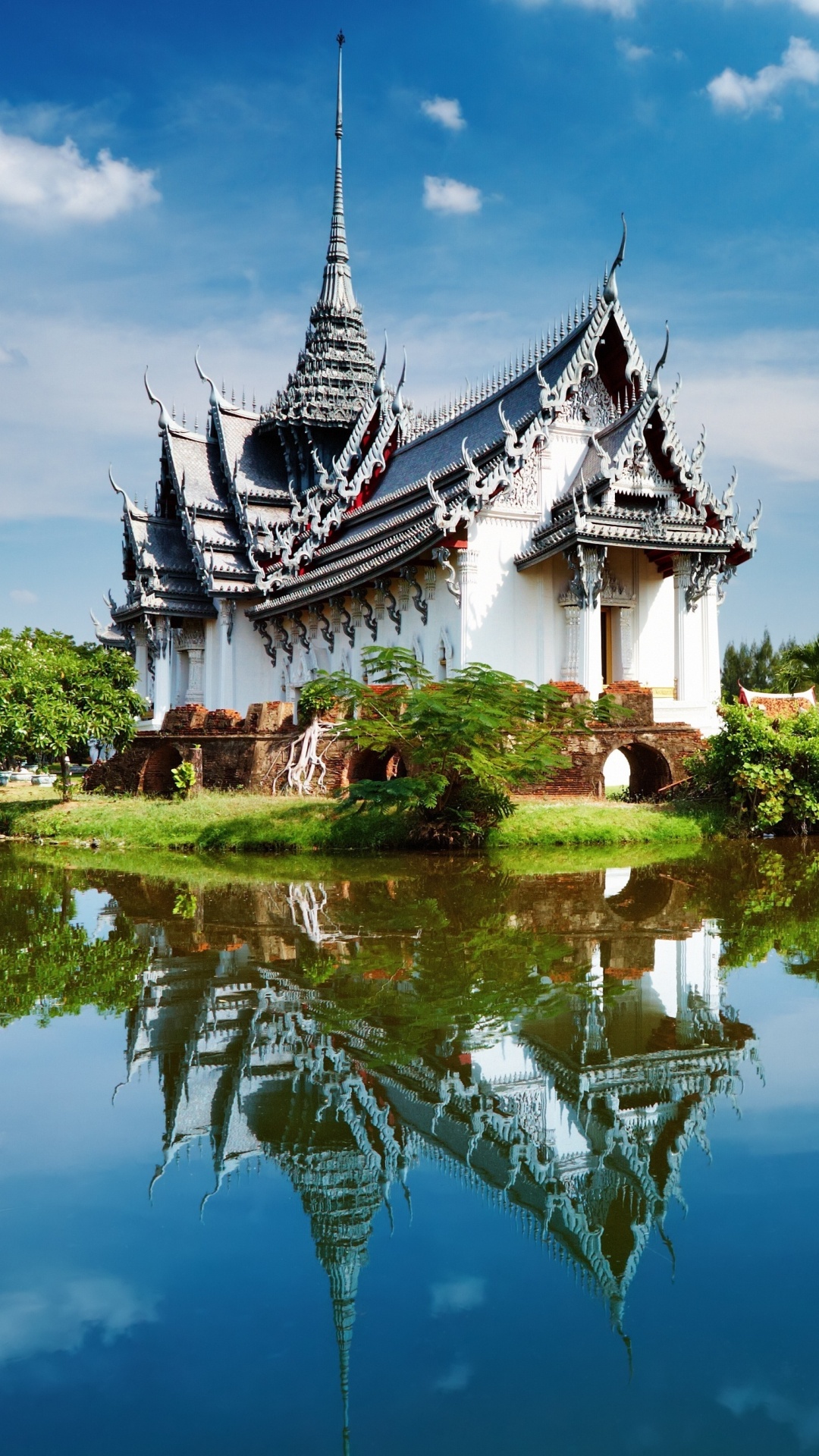 Обои отражение, природа, китайская архитектура, водный путь, парк на телефон Android, 1080x1920 Full HD картинки