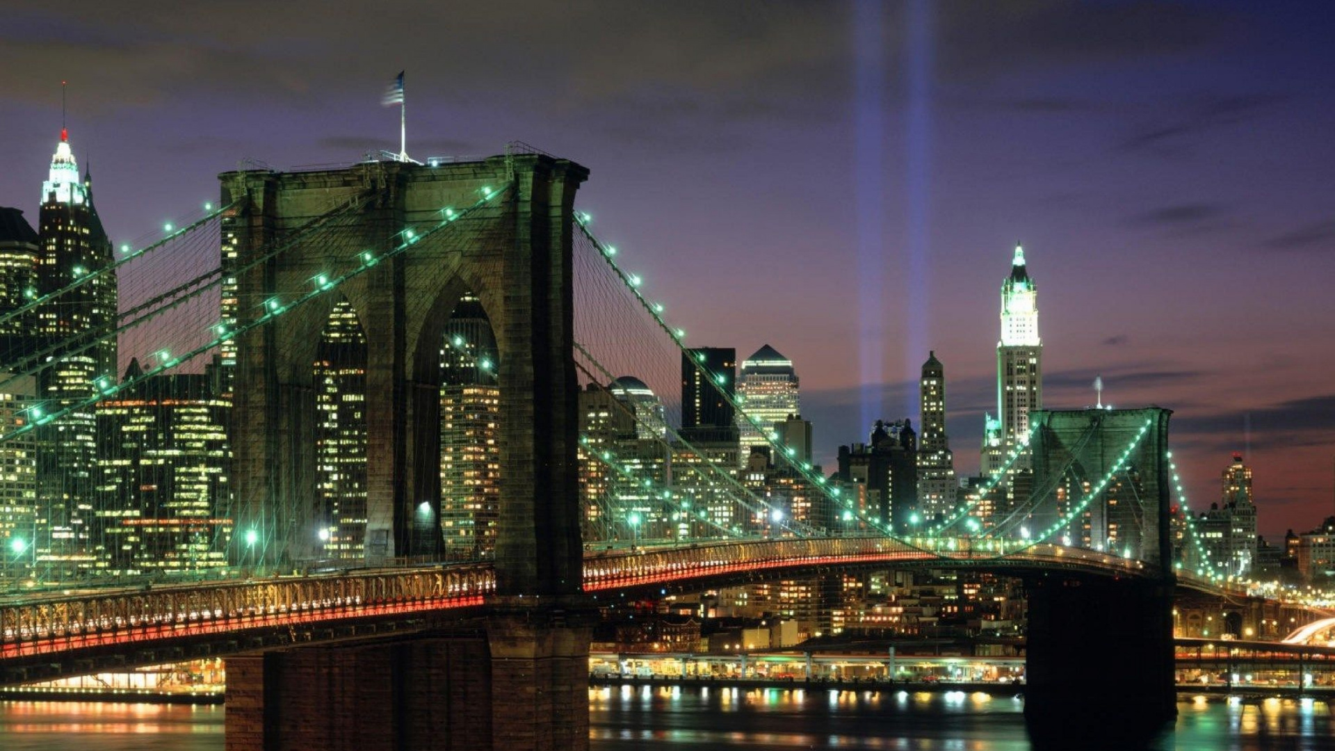 Обои 1920x1080 Бруклинский мост, городской пейзаж, город, метрополия, ночь, Full HD, HDTV, 1080p 16:9 картинка