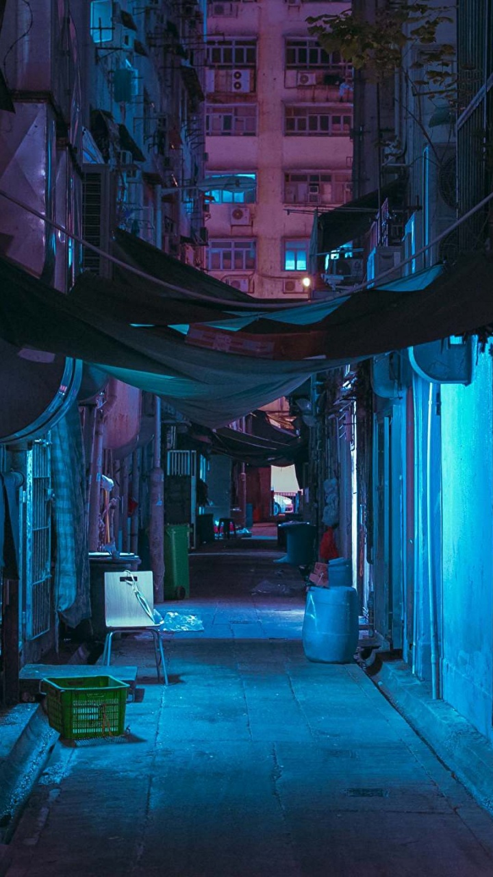 Обои синий, аллея, улица, темнота, полночь для HD Samsung Galaxy S3/J3/J4/J5, Meizu M5, Sony Xperia L1/L2, заставка, 720x1280 картинка