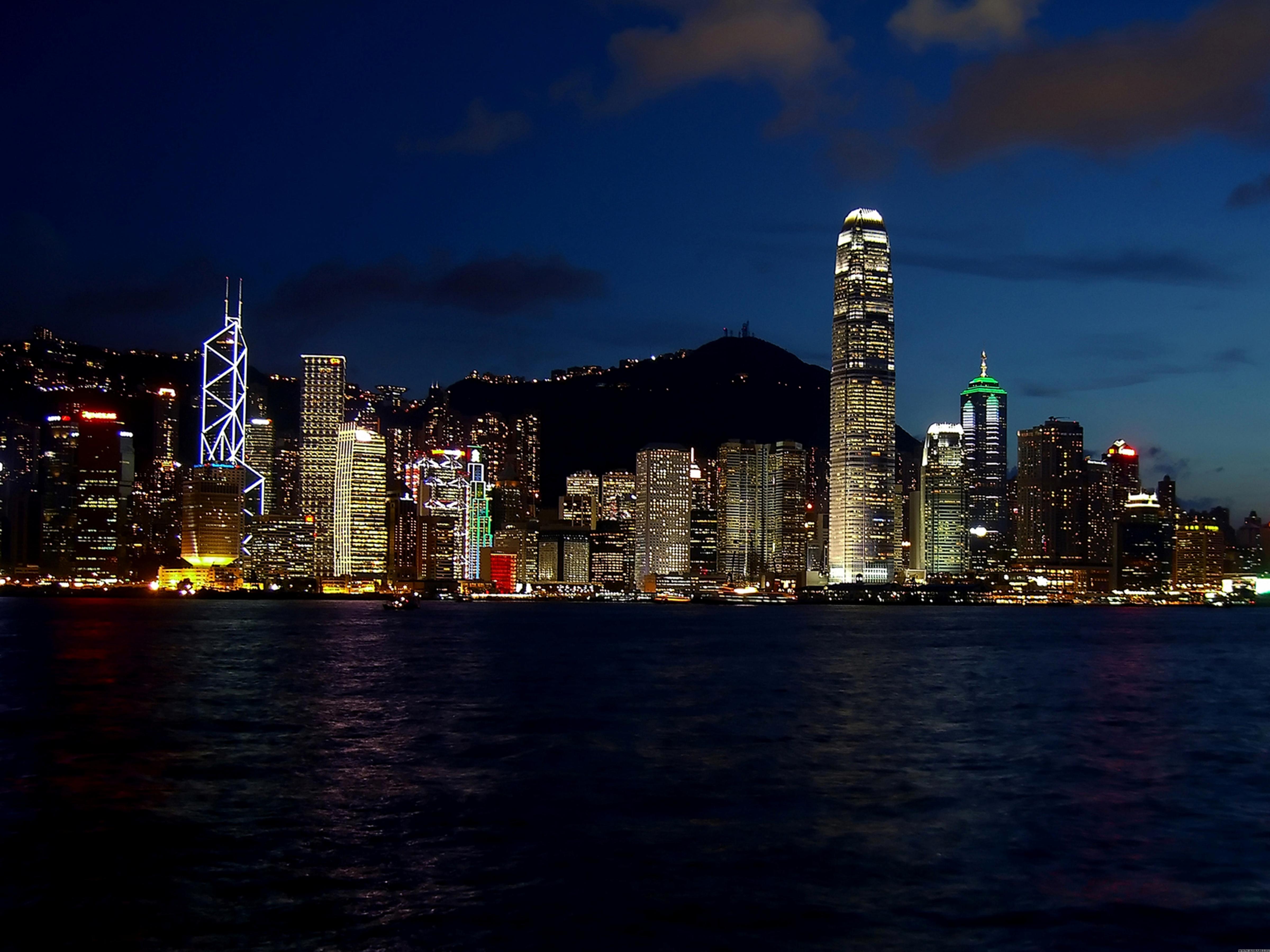 Обои Гавань Виктория, город, городской пейзаж, линия горизонта, ночь, фото, заставка