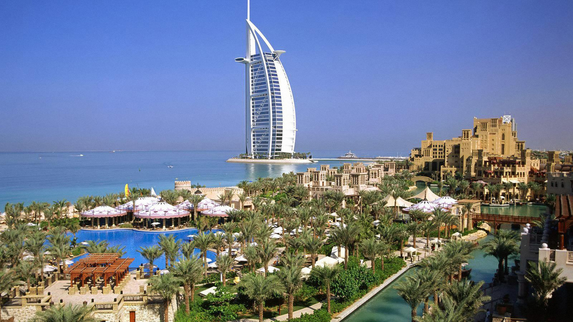 Обои 1920x1080 Бурдж Аль араб, город, туризм, мир, Бурдж Халифа, Full HD, HDTV, 1080p 16:9 картинка