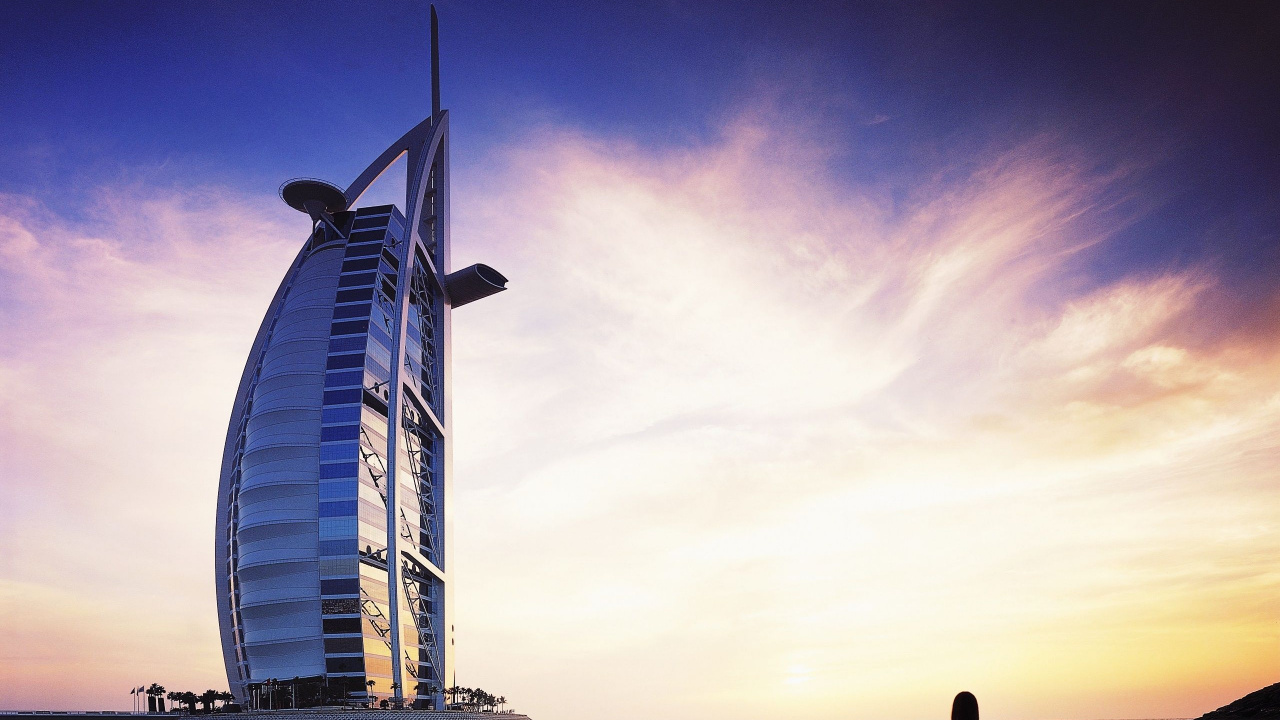 Обои 1280x720 Бурдж Халифа, закат, океан, горизонт, вечер, HD, HDV, 720p, 16:9 картинка