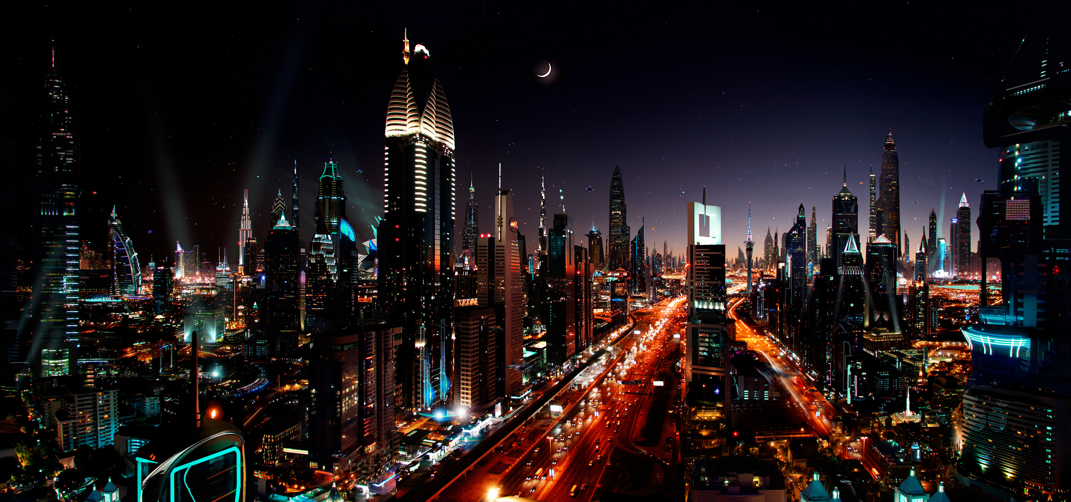 Обои Дубай ночью, ночь, город, городской пейзаж, метрополия, фото, заставка