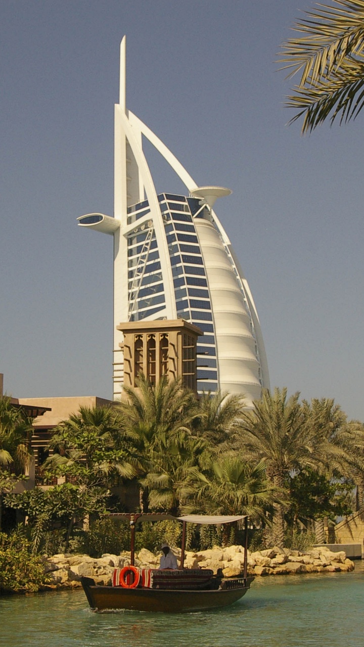 Обои Бурдж Аль араб, достопримечательность, небоскреб, вышка, дерево для HD Samsung Galaxy S3/J3/J4/J5, Meizu M5, Sony Xperia L1/L2, заставка, 720x1280 картинка