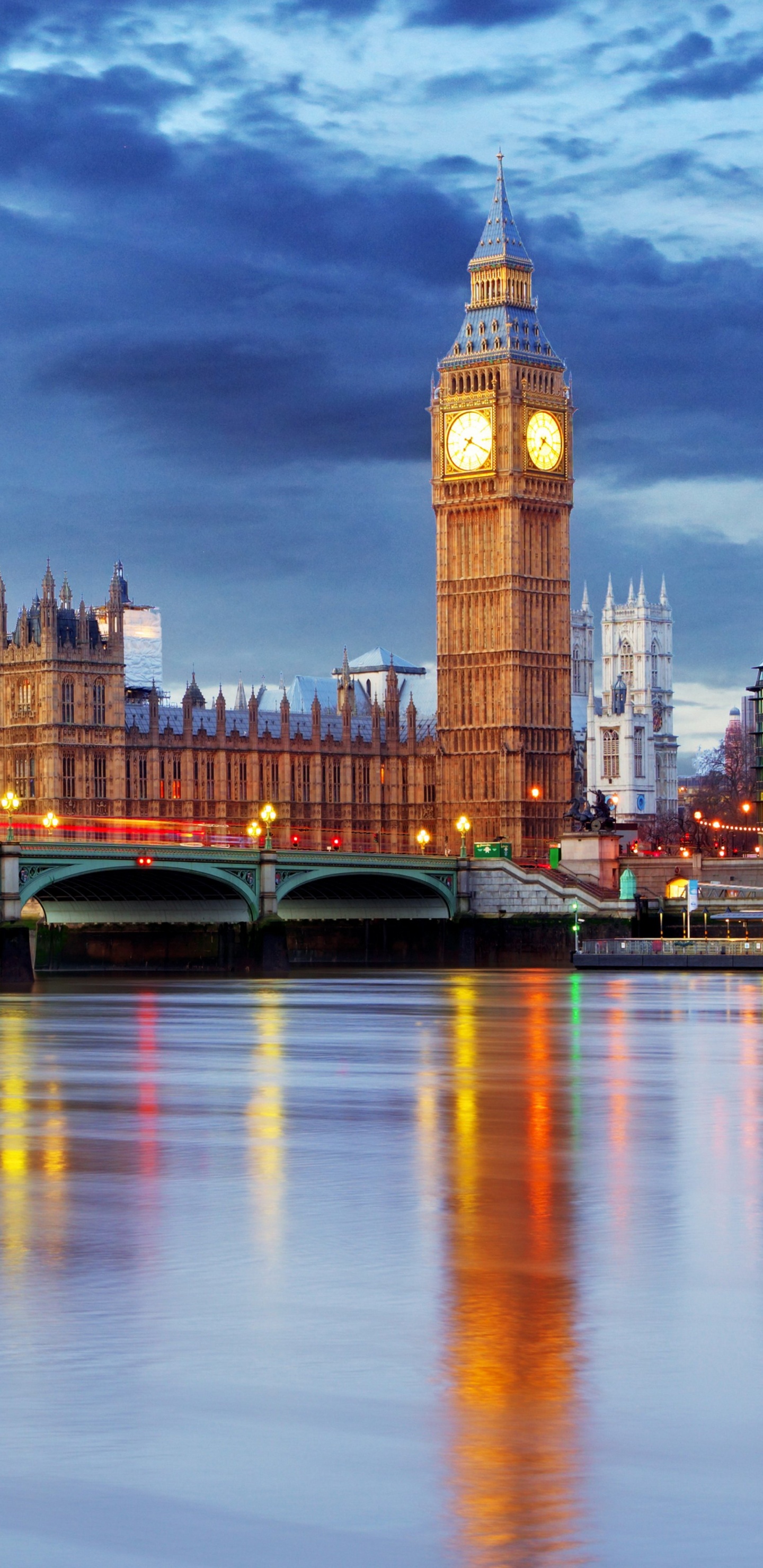 Обои Биг Бен, городской пейзаж, ориентир, город, отражение для Samsung Galaxy S8/S8+/S9/S9+/Note 8/Note 9 QHD, заставка, 1440x2960 картинка