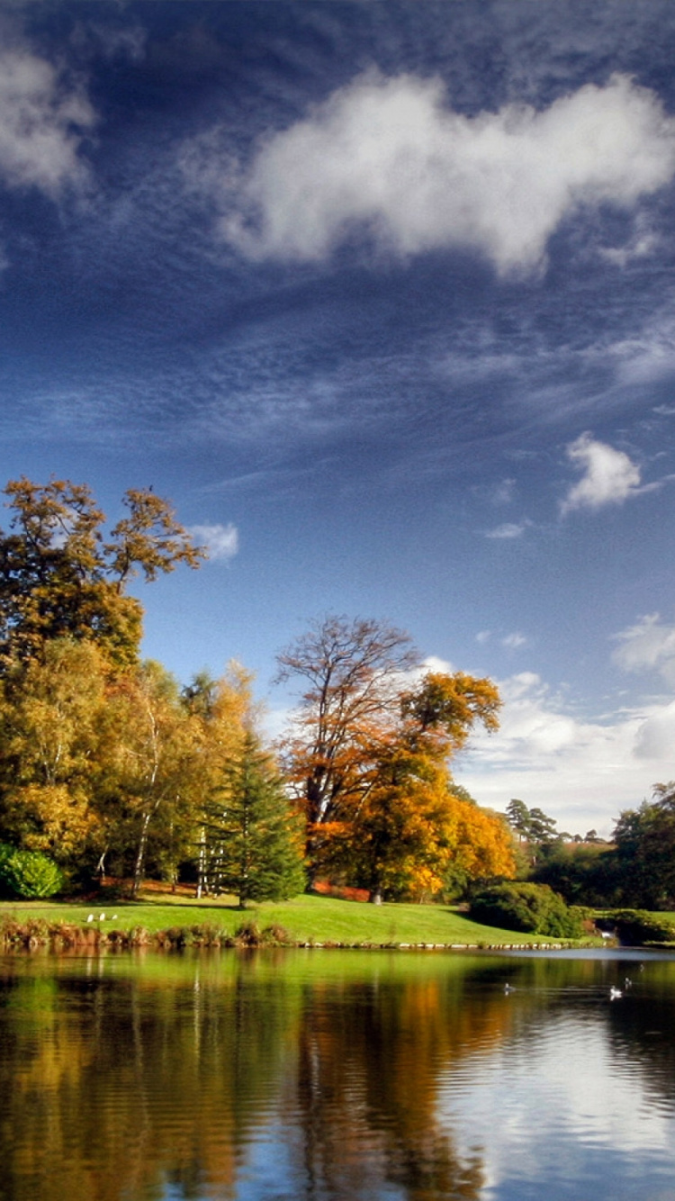 Обои отражение, природа, дерево, вода, облако для iPhone 6, 6S, 7, 8, заставка, 750x1334 картинка