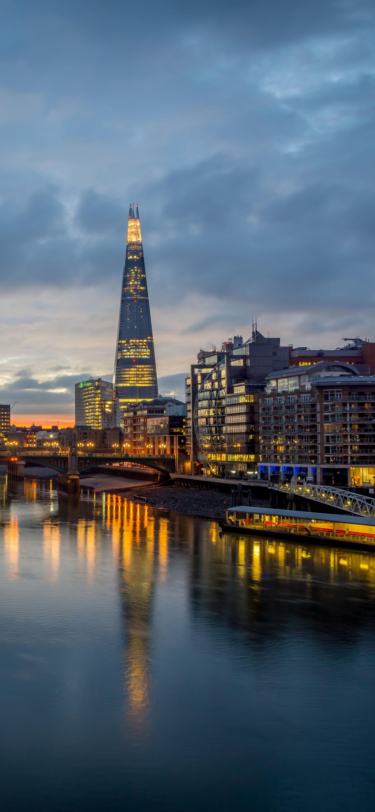 Обои отражение, городской пейзаж, город, городской район, ориентир для iPhone XS Max, заставка, 1242x2688 картинка