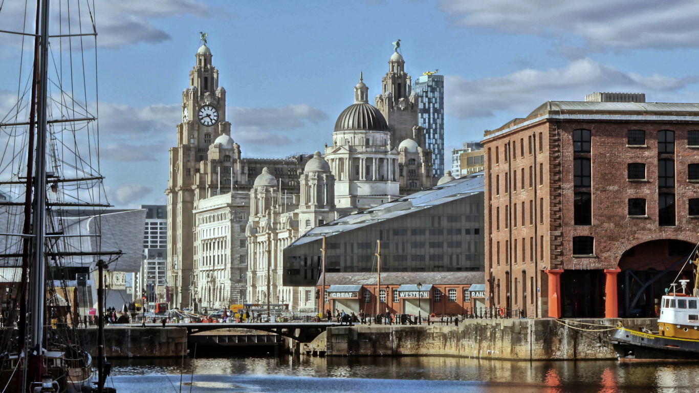 Обои 1366x768 здание, водный путь, город, канал, Пир-Хед, HD ready картинка
