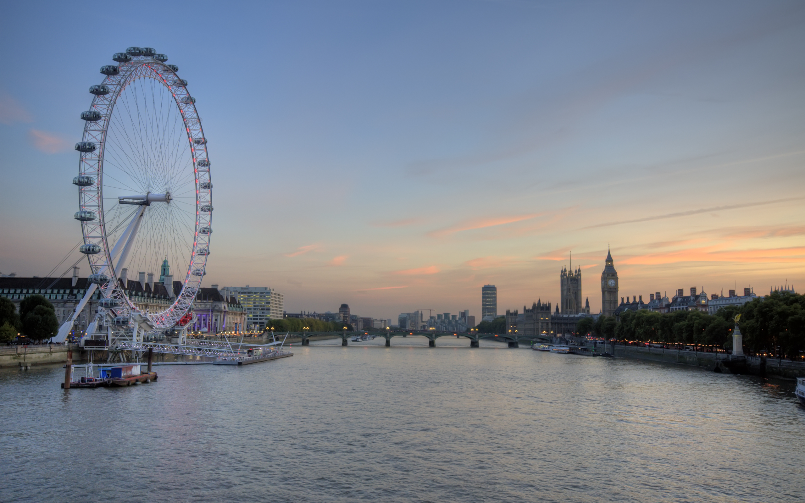 Обои лондонский глаз, Биг Бен, река темза, колесо обозрения, реки, фото, заставка