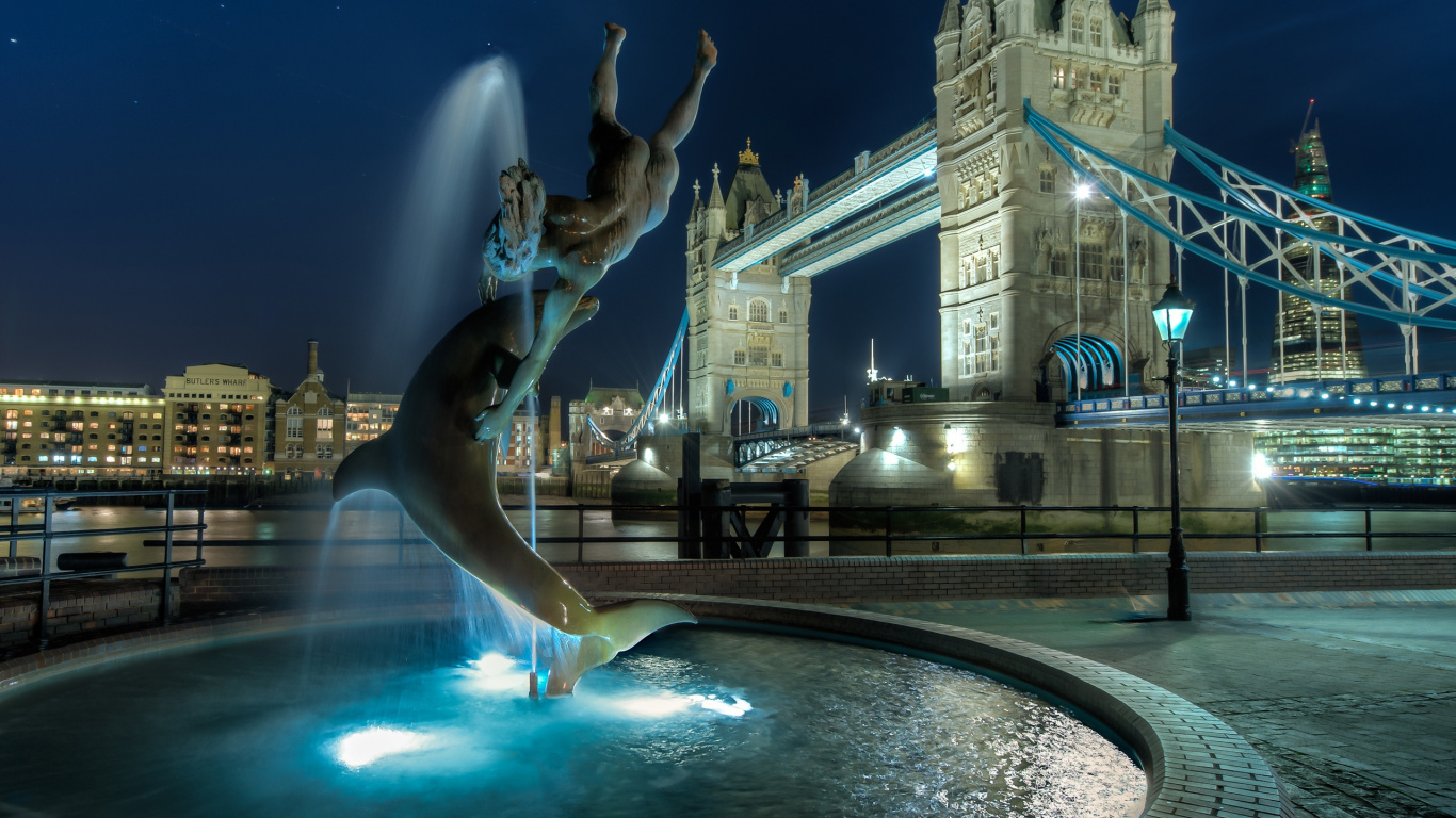 Обои 1366x768 тауэрский мост, лондонский мост, вода, ориентир, архитектура, HD ready картинка
