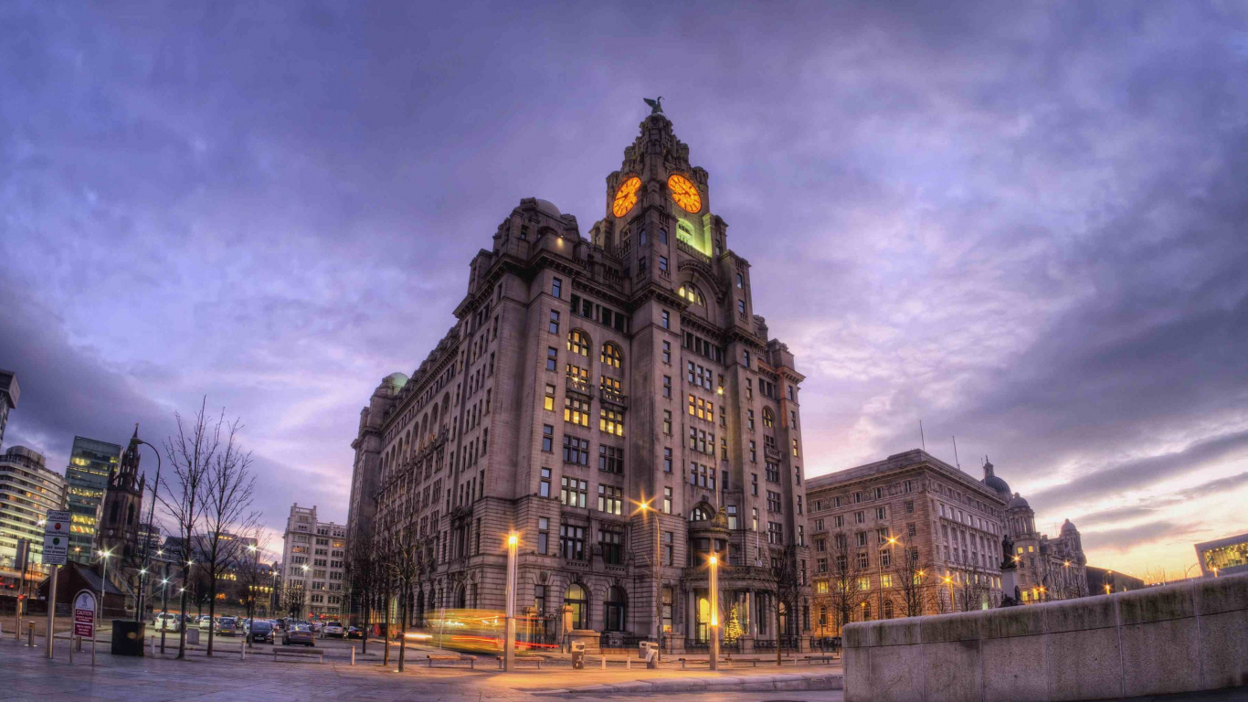 Обои 1366x768 ориентир, город, здание, городок, вечер, HD ready картинка