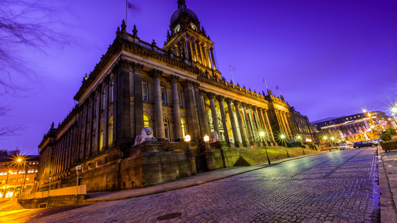 Обои 1366x768 Лидс, Ливерпуль, ориентир, ночь, город, HD ready картинка