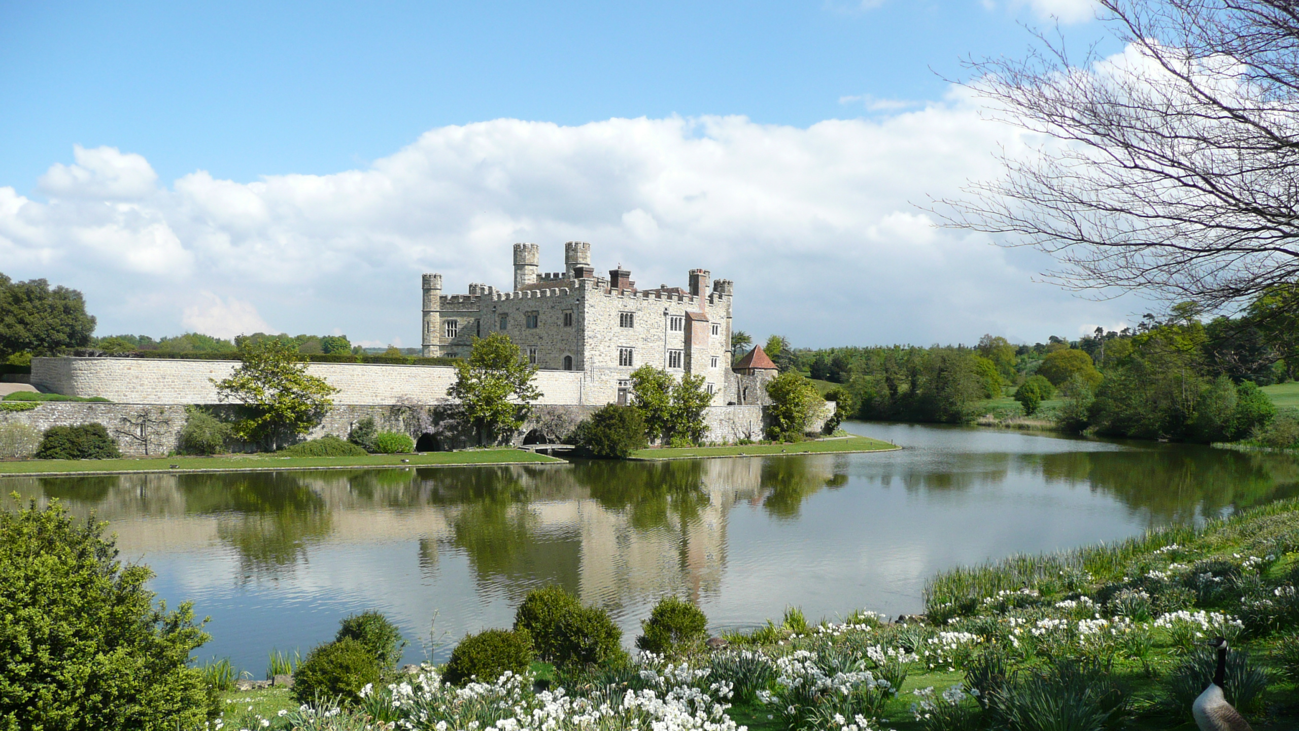 Обои 2560x1440 замок, ров, Лидс, Банк, дерево, WQHD, QHD, 16:9 картинка