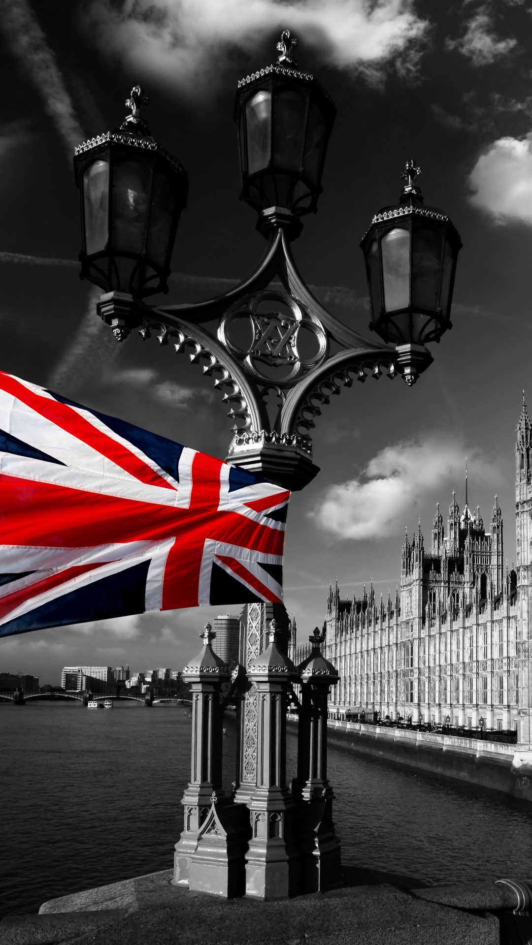 Обои монохромный, ориентир, монохромный режим, метрополия, красный цвет для iPhone 6S+/7+/8+, заставка, 1080x1920 картинка