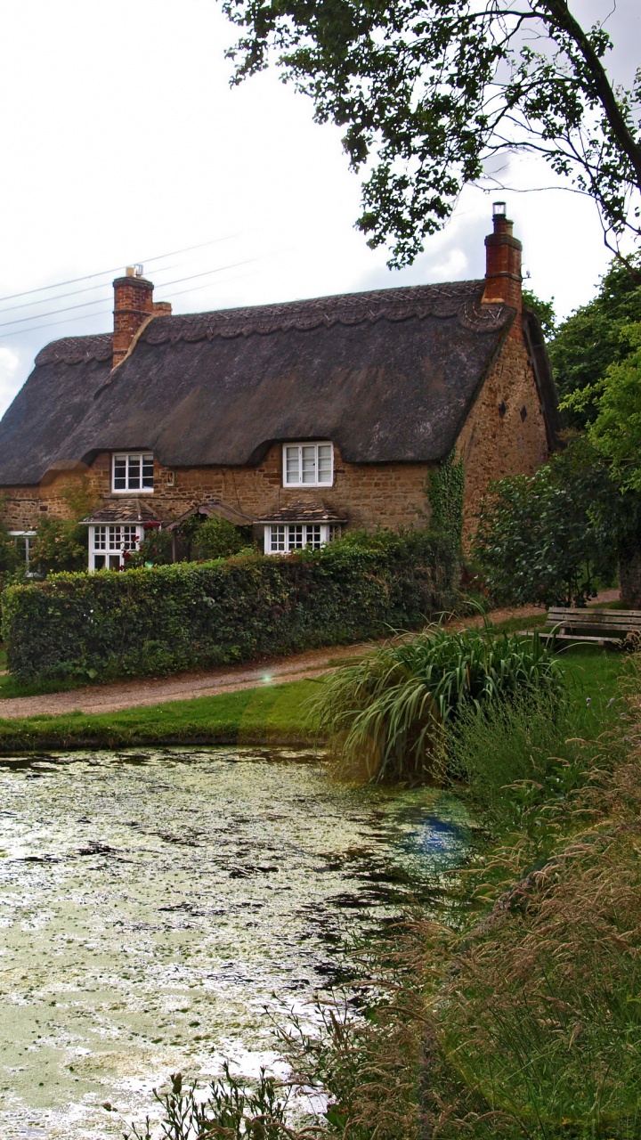 Обои вода, Sibford Гауэр, коттедж, здание, свойство для HD Samsung Galaxy S3/J3/J4/J5, Meizu M5, Sony Xperia L1/L2, заставка, 720x1280 картинка