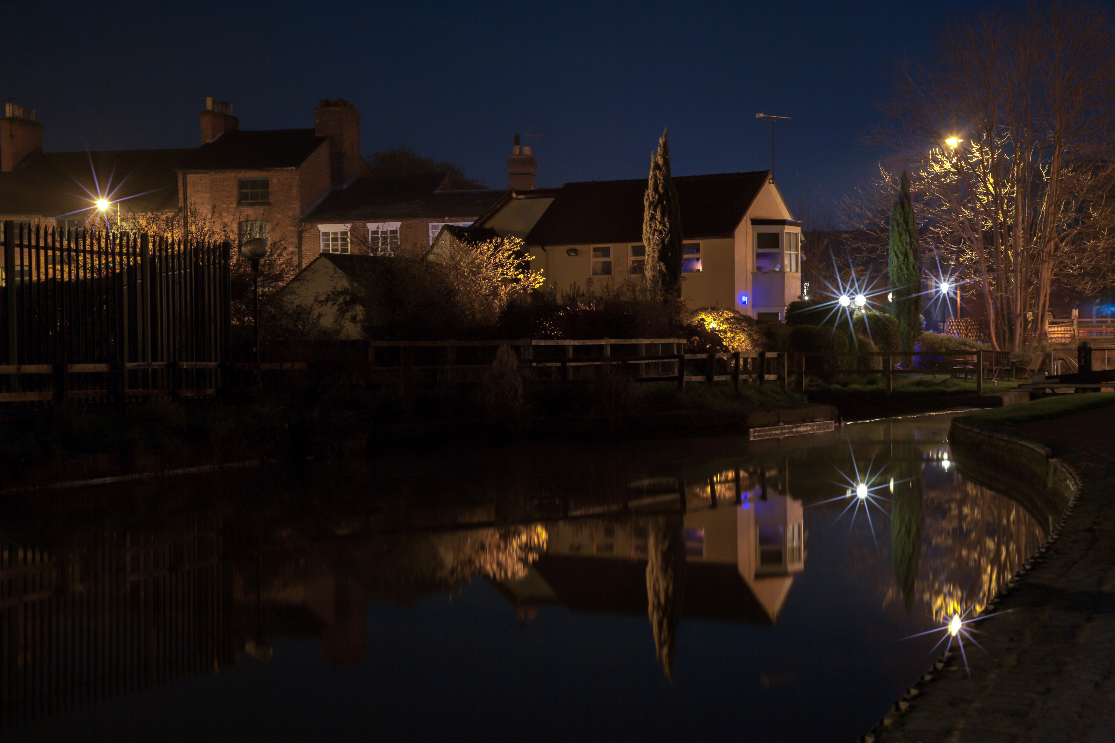 Обои отражение, здание, ночь, вода, водный путь, фото, заставка