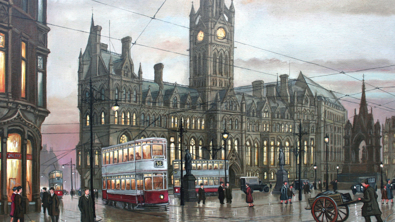 Обои 1366x768 Площади Альберт-Манчестер, живопись, Площадь Альберта, артист, арт, HD ready картинка