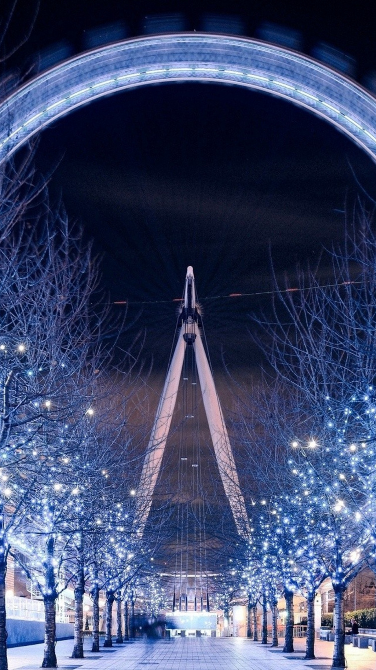 Обои зима, колесо обозрения, ориентир, архитектура, свет для iPhone 6, 6S, 7, 8, заставка, 750x1334 картинка