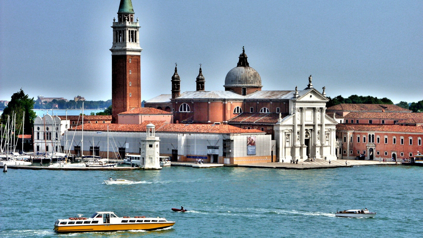 Обои 1366x768 Церковь Сан Джорджо Маджоре, Венеция, водный путь, вода, город, HD ready картинка