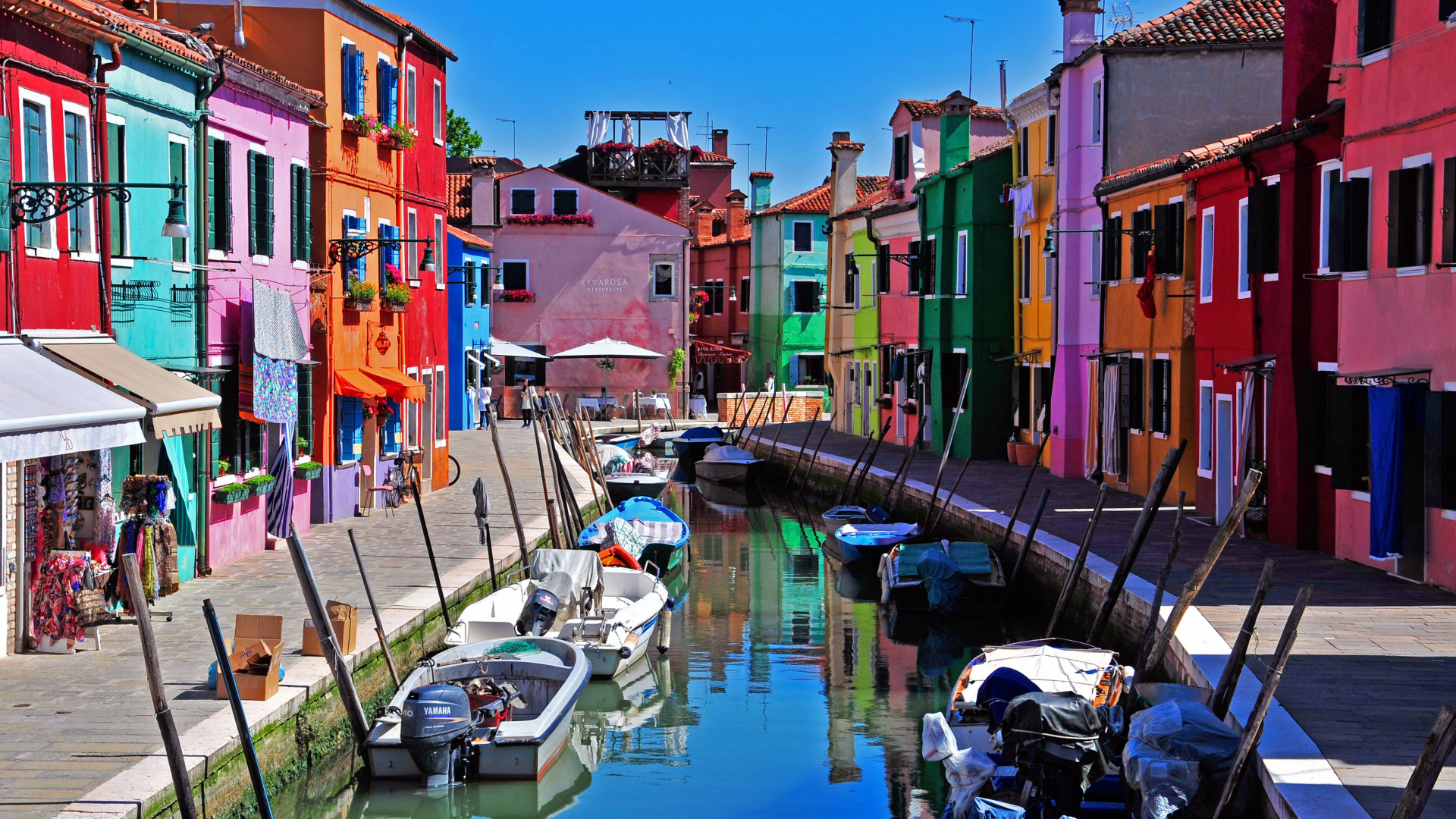 Обои 1920x1080 Бурано, Остров, канал, водный путь, городок, Full HD, HDTV, 1080p 16:9 картинка