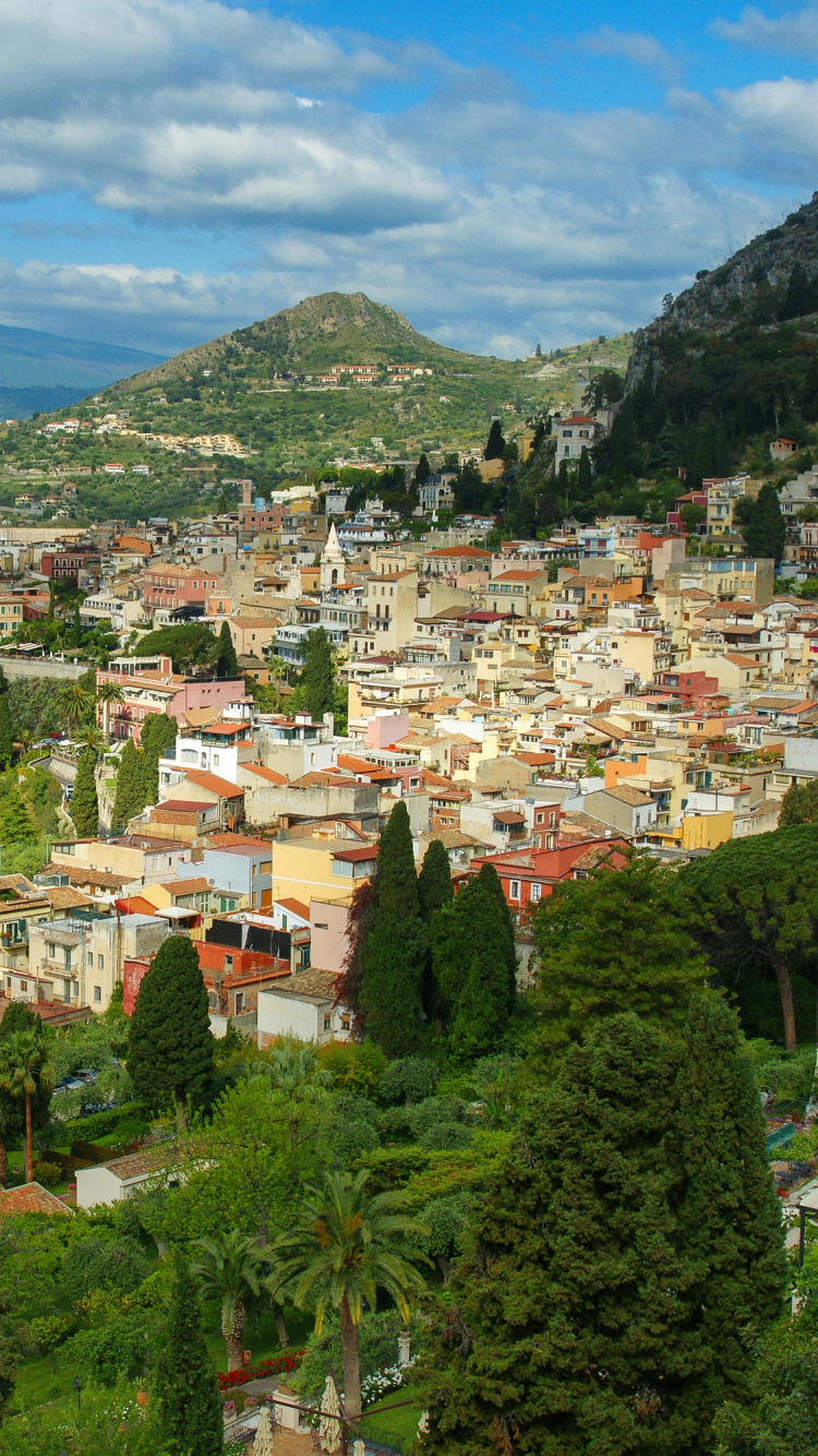 Обои Таормина, Мессина, Рим, горная деревня, горный рельеф для iPhone 6, 6S, 7, 8, заставка, 750x1334 картинка