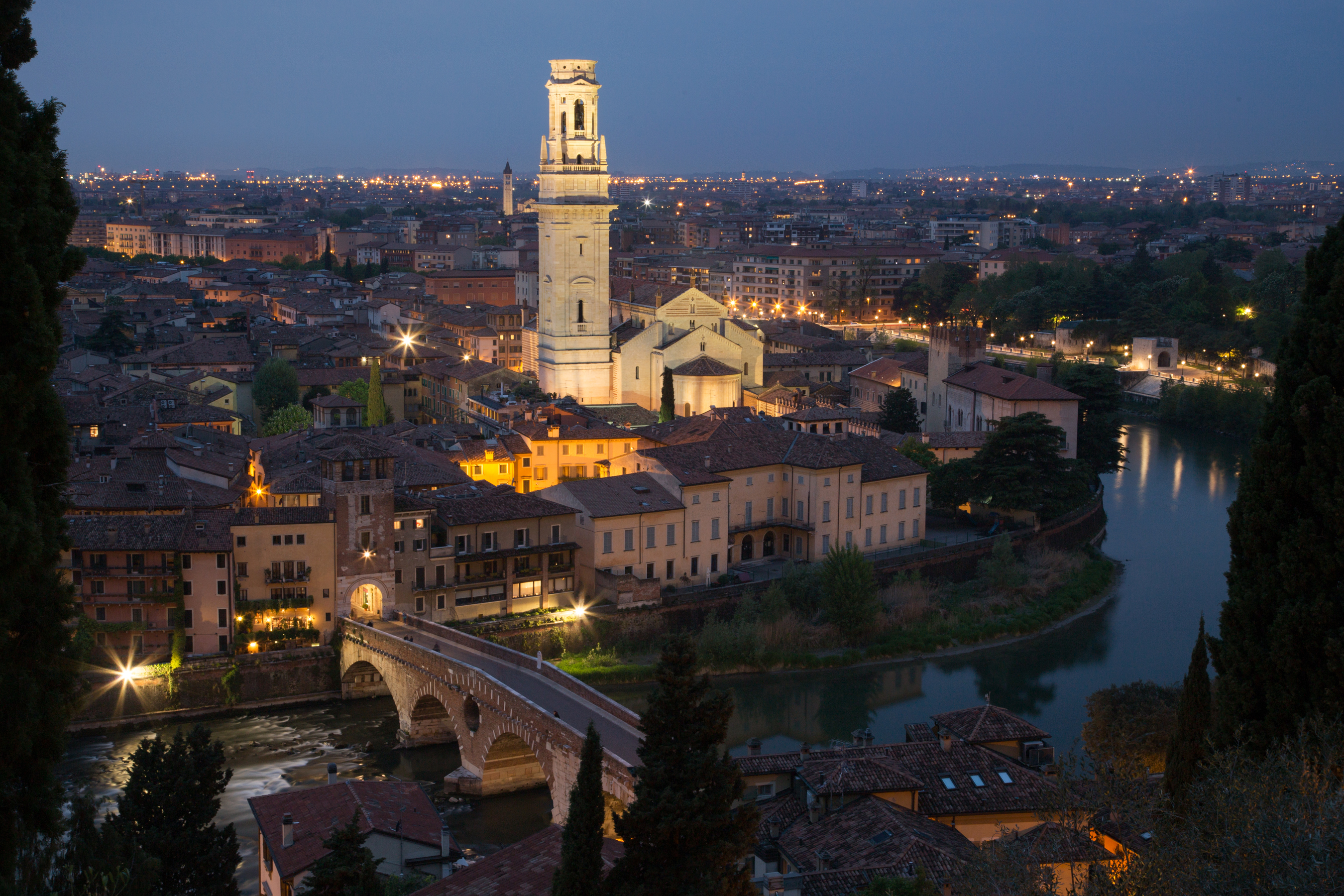 Обои Верона, достопримечательность, ориентир, ночь, реки, фото, заставка