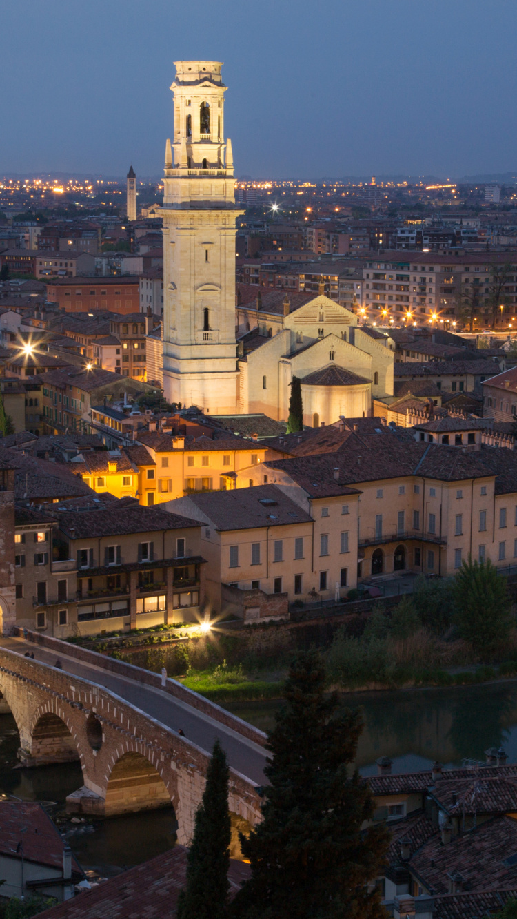 Обои Верона, достопримечательность, ориентир, ночь, реки для iPhone 6, 6S, 7, 8, заставка, 750x1334 картинка