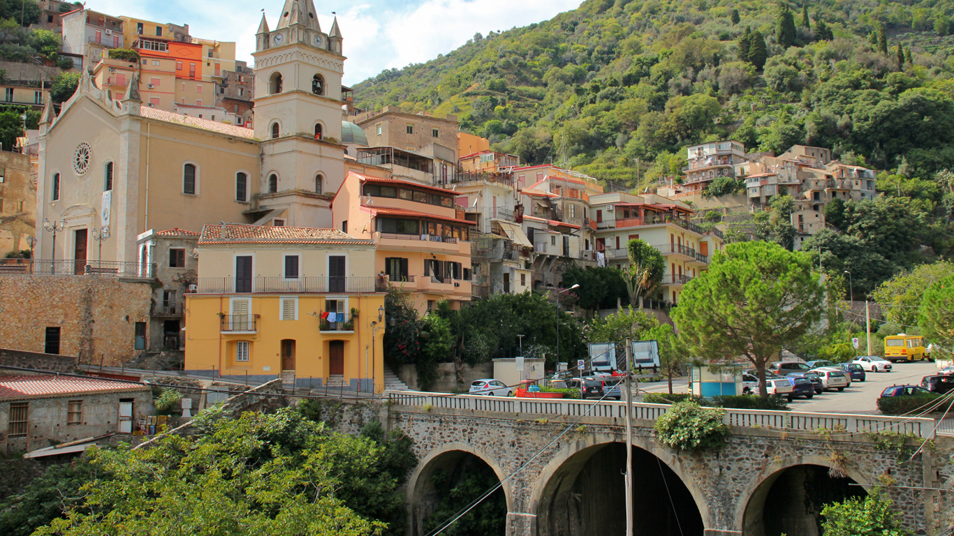 Обои 1366x768 город, городок, деревня, горная деревня, здание, HD ready картинка