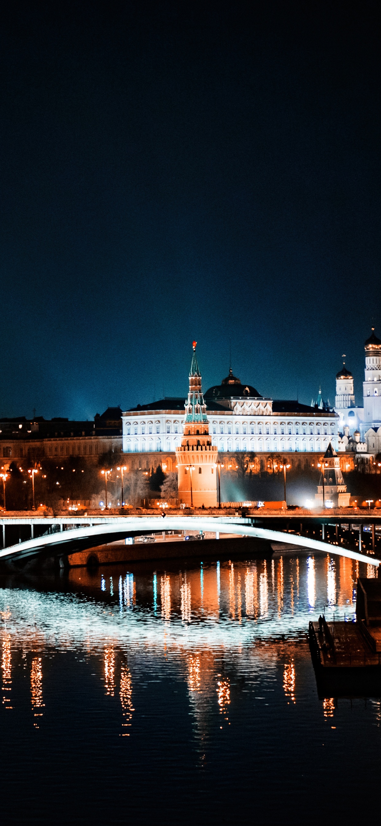 Обои ночь, город, ориентир, вода, отражение для iPhone XS Max, заставка, 1242x2688 картинка