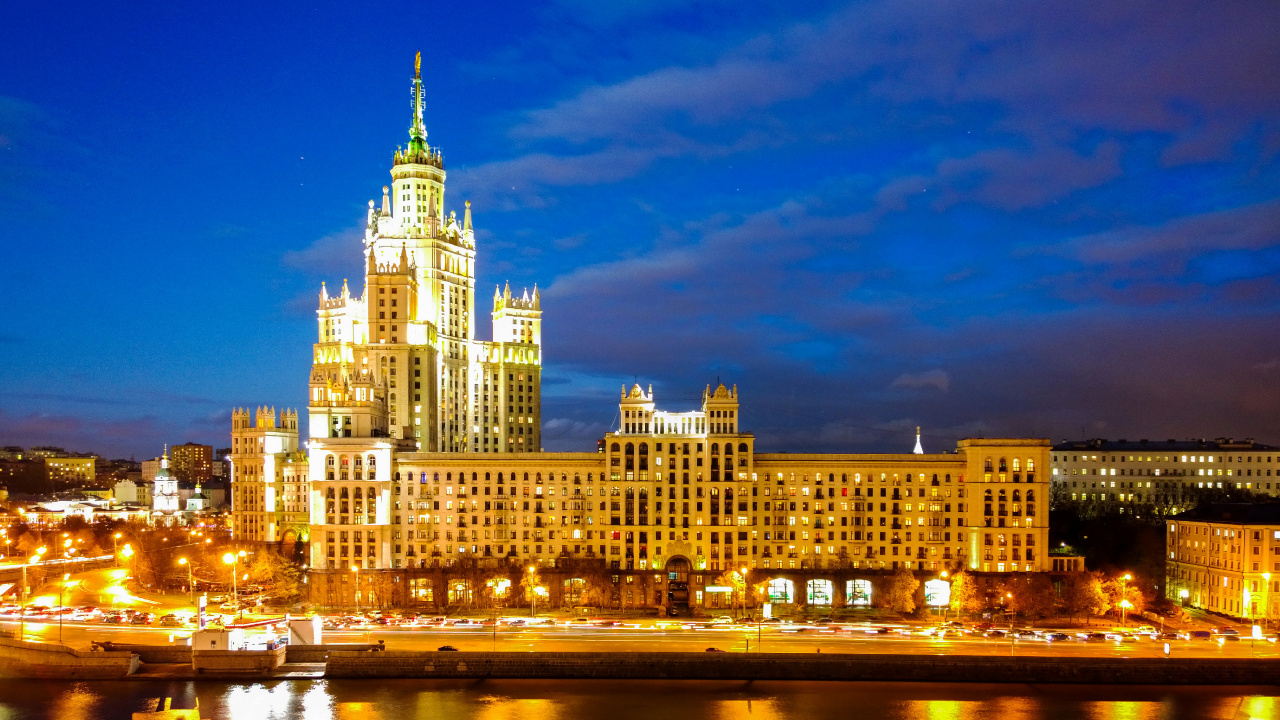 Обои 1280x720 ориентир, город, ночь, метрополия, городской район, HD, HDV, 720p, 16:9 картинка