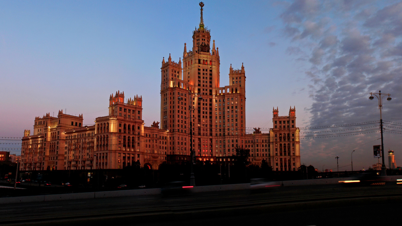 Обои 1366x768 Москва, здание, небоскреб, горизонт, город, HD ready картинка