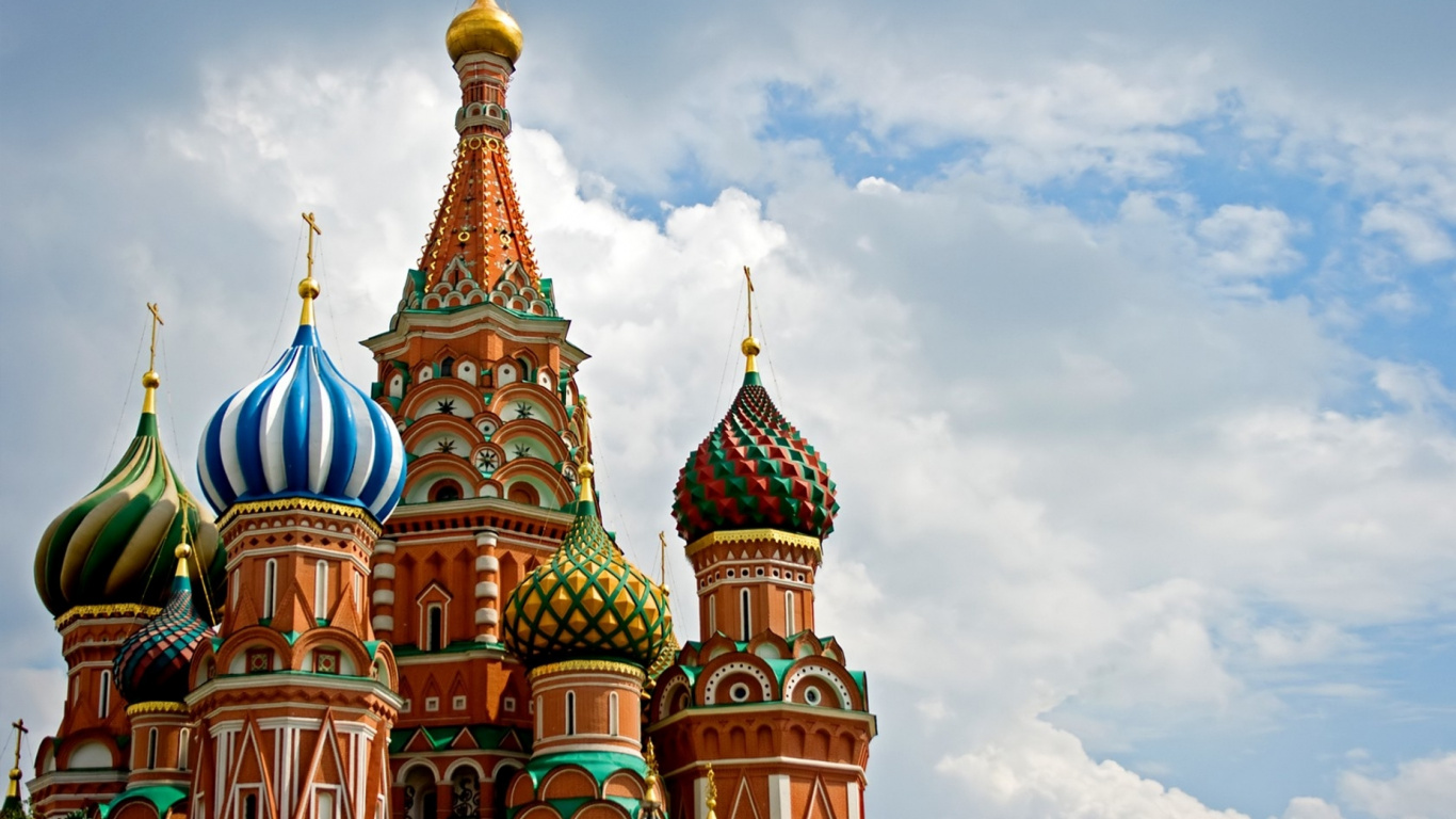Обои 1366x768 собор Василия Блаженного, собор, ориентир, место поклонения, купол, HD ready картинка