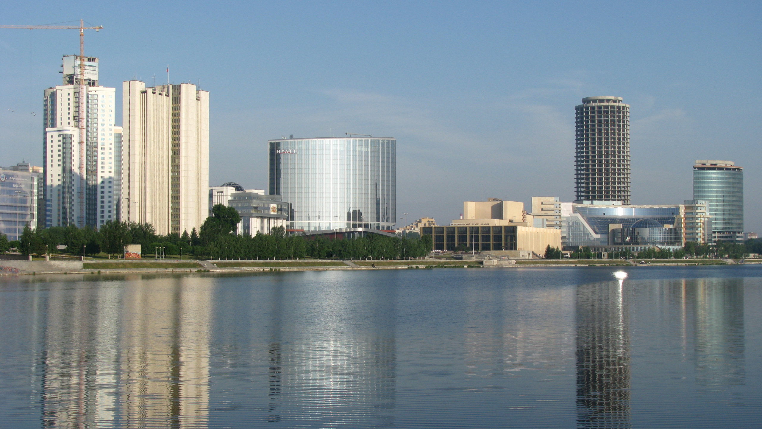 Обои 2560x1440 екатеринбург, город, линия горизонта, отражение, дневное время, WQHD, QHD, 16:9 картинка