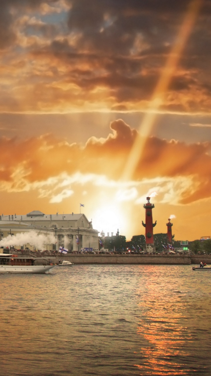 Обои водный путь, реки, закат, вечер, город для HD Samsung Galaxy S3/J3/J4/J5, Meizu M5, Sony Xperia L1/L2, заставка, 720x1280 картинка