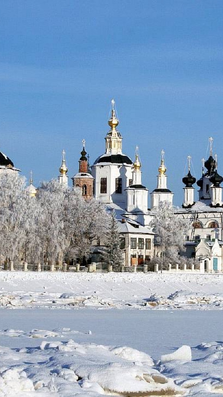 Обои Дед Мороз, великий Устюг, город, снег, зима для HD Samsung Galaxy S3/J3/J4/J5, Meizu M5, Sony Xperia L1/L2, заставка, 720x1280 картинка