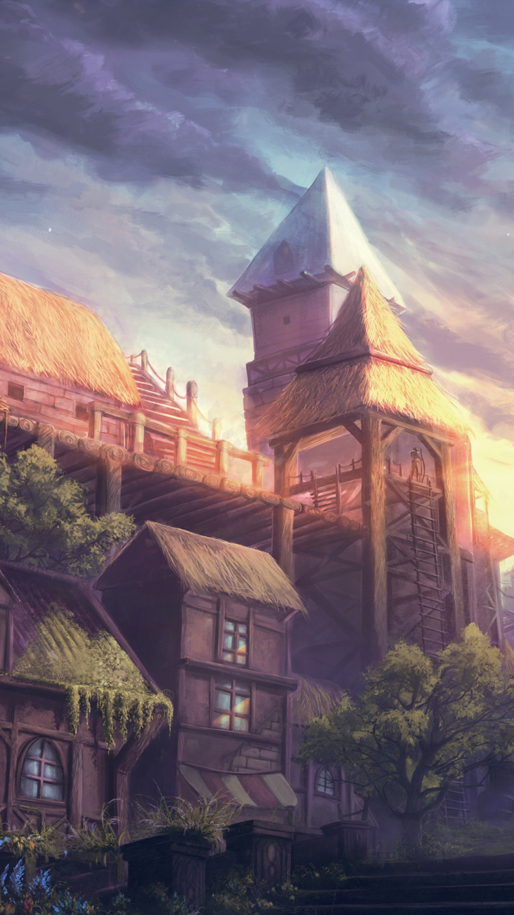 Обои фэнтези, цифровое искусство, живопись, вечер, пейзаж для iPhone 6, 6S, 7, 8, заставка, 750x1334 картинка