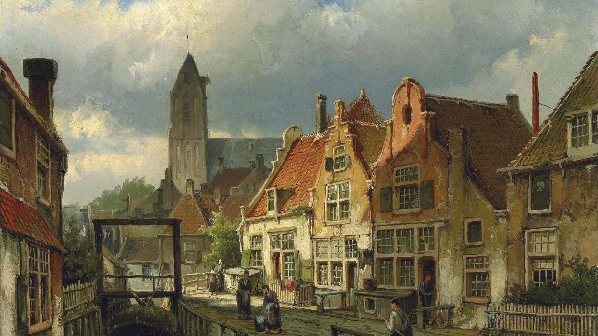 Обои 1920x1080 Виллем Куккук Кристи, живопись, арт, артист, городок, Full HD, HDTV, 1080p 16:9 картинка