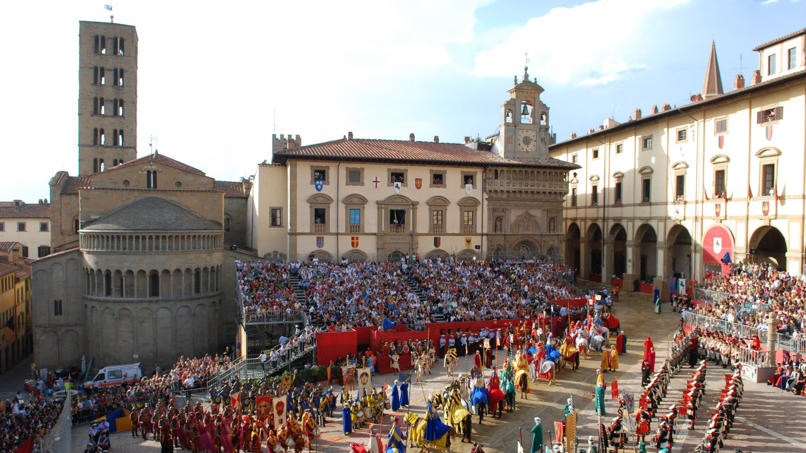 Обои 2560x1440 Пьяцца Гранде, Giostra Дель Saracino, городская площадь, толпа, город, WQHD, QHD, 16:9 картинка
