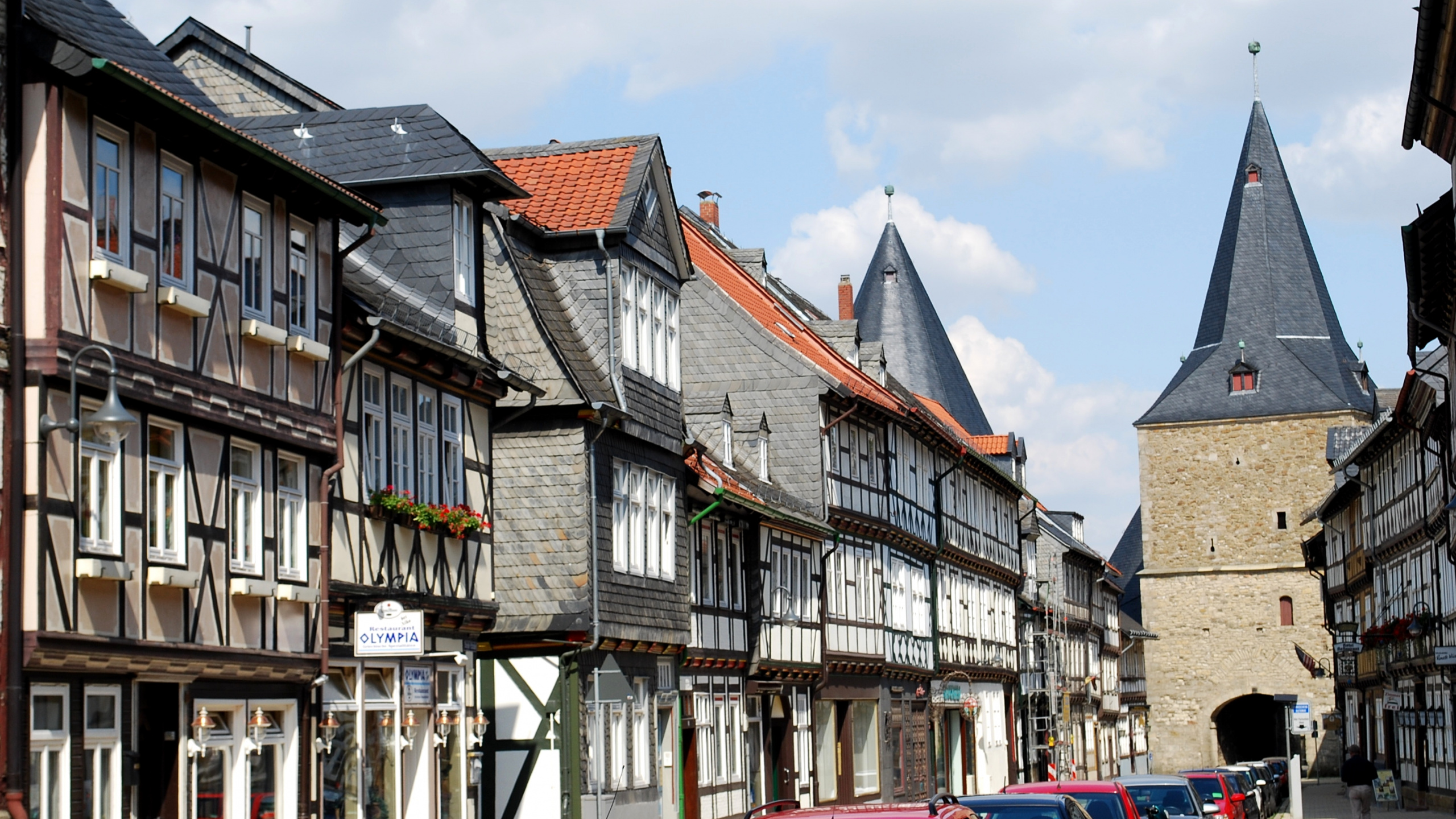 Обои 2560x1440 здание, средневековая архитектура, Гослар, городок, соседство, WQHD, QHD, 16:9 картинка