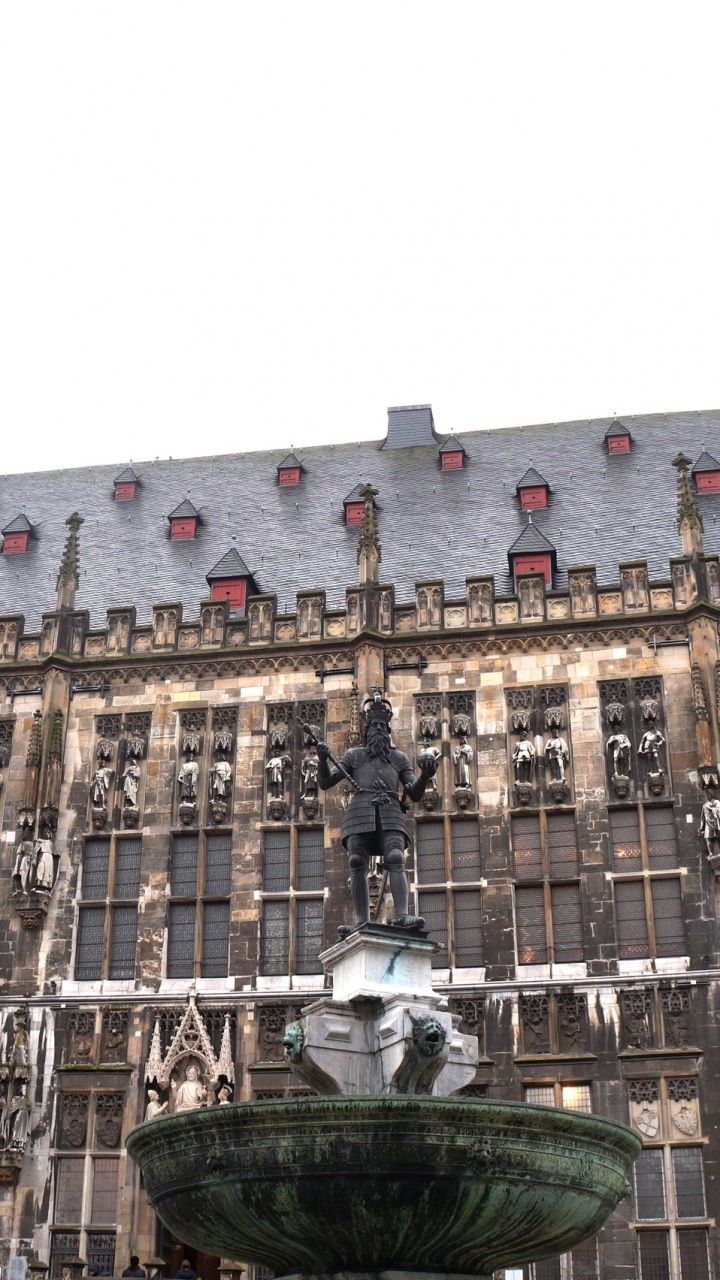 Обои мэрия, Ахенская Ратуша, Статуя Карла Великого, ориентир, здание для HD Samsung Galaxy S3/J3/J4/J5, Meizu M5, Sony Xperia L1/L2, заставка, 720x1280 картинка