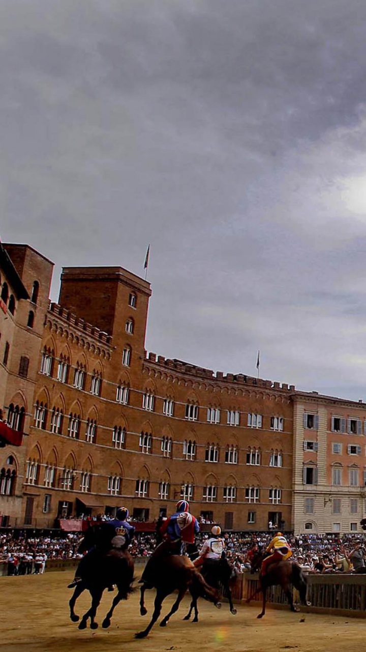 Обои Палаццо Пубблико, конь, Палио ди Сиена, городская площадь, город для HD Samsung Galaxy S3/J3/J4/J5, Meizu M5, Sony Xperia L1/L2, заставка, 720x1280 картинка