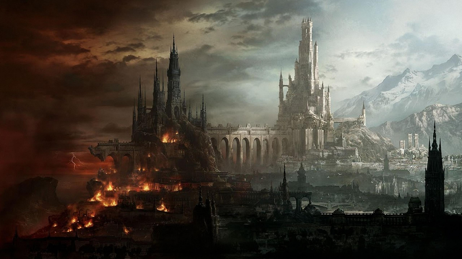 Обои 1920x1080 фэнтези, арт, фантастическое искусство, метрополия, иллюстрация, Full HD, HDTV, 1080p 16:9 картинка