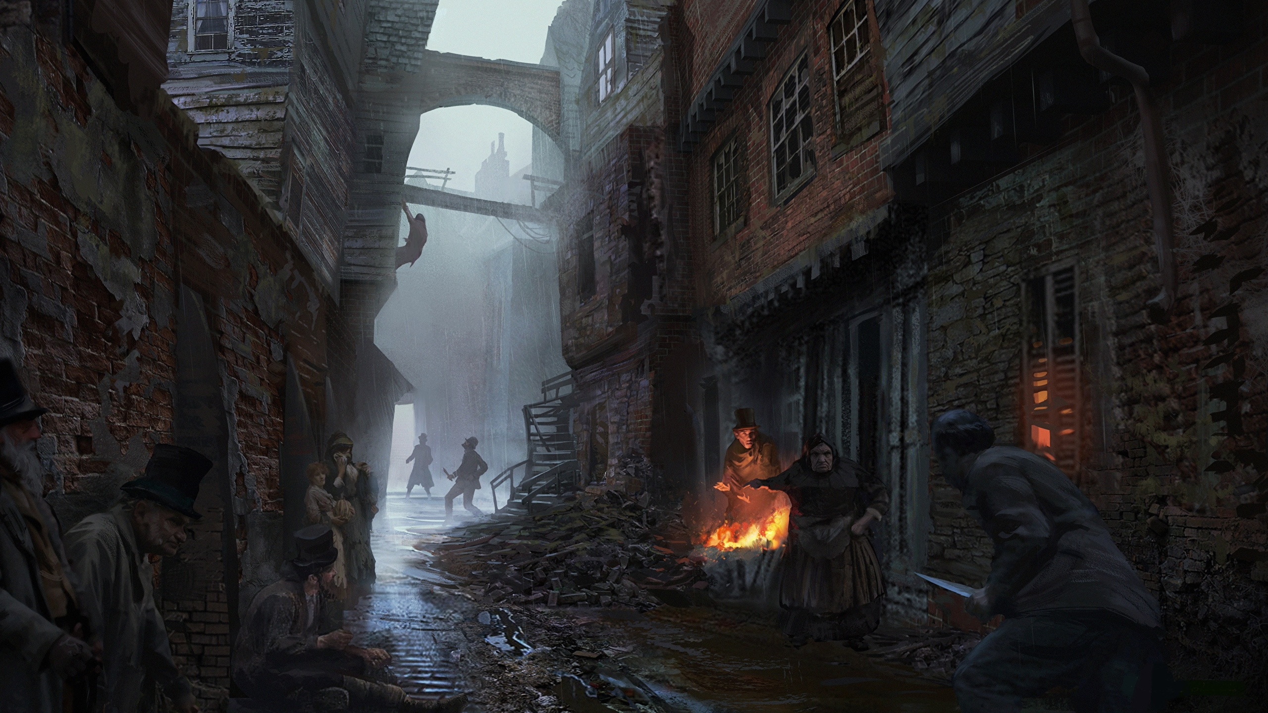 Обои 2560x1440 assassins creed syndicate, темнота, assassins creed origins, средневековые трущобы фэнтези арт, видеоигра, WQHD, QHD, 16:9 картинка