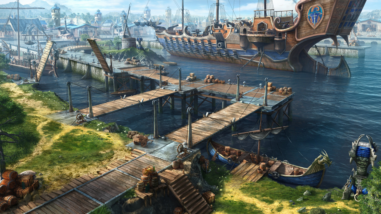 Обои 1280x720 арт, живопись, компьютерная игра, корабль, порт, HD, HDV, 720p, 16:9 картинка