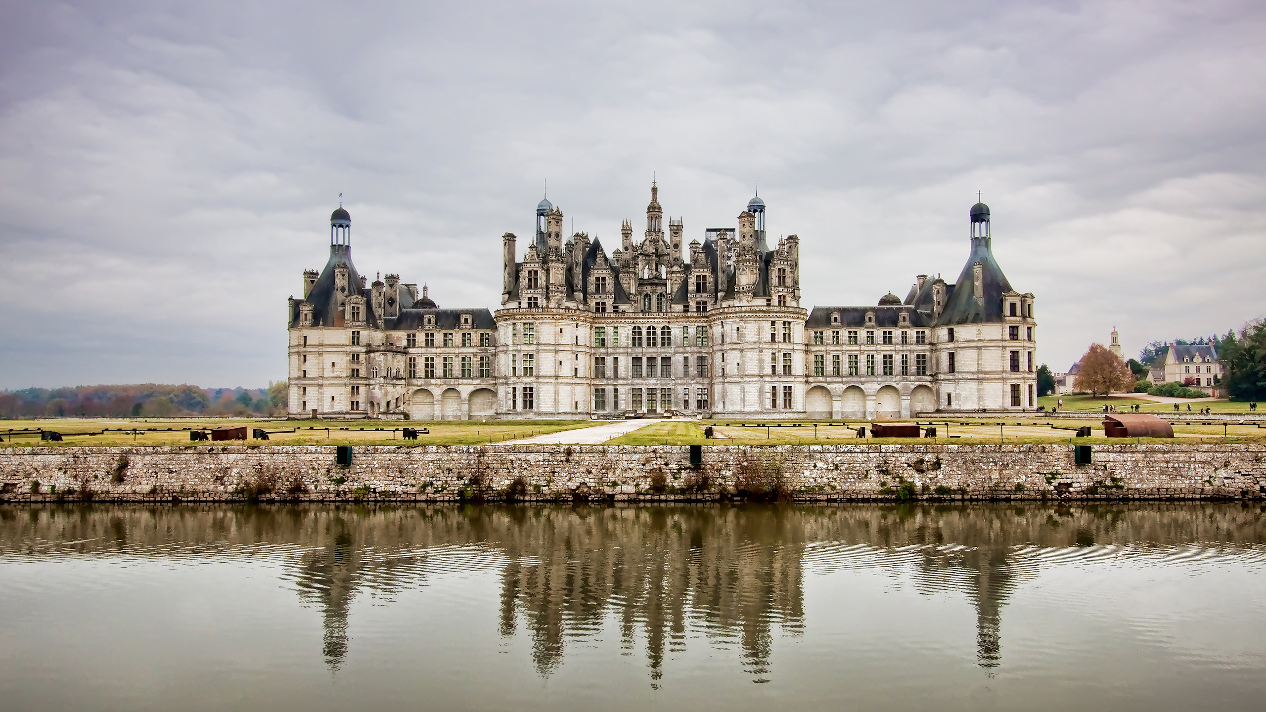 Обои 2560x1440 замок, отражение, здание, водный замок, Chteau де Шантийи, WQHD, QHD, 16:9 картинка