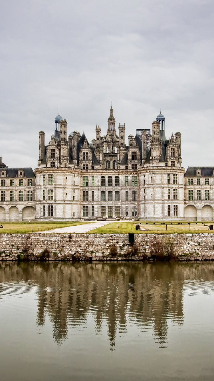 Обои замок, отражение, здание, водный замок, Chteau де Шантийи для iPhone 6, 6S, 7, 8, заставка, 750x1334 картинка
