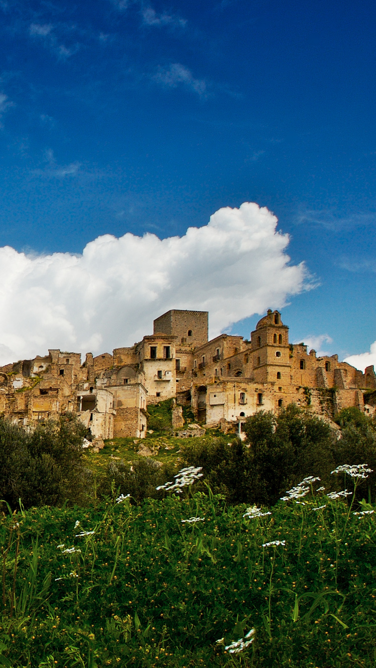 Обои Крако Италия, Крако, город-призрак, Залив Таранто, облако для iPhone 6, 6S, 7, 8, заставка, 750x1334 картинка