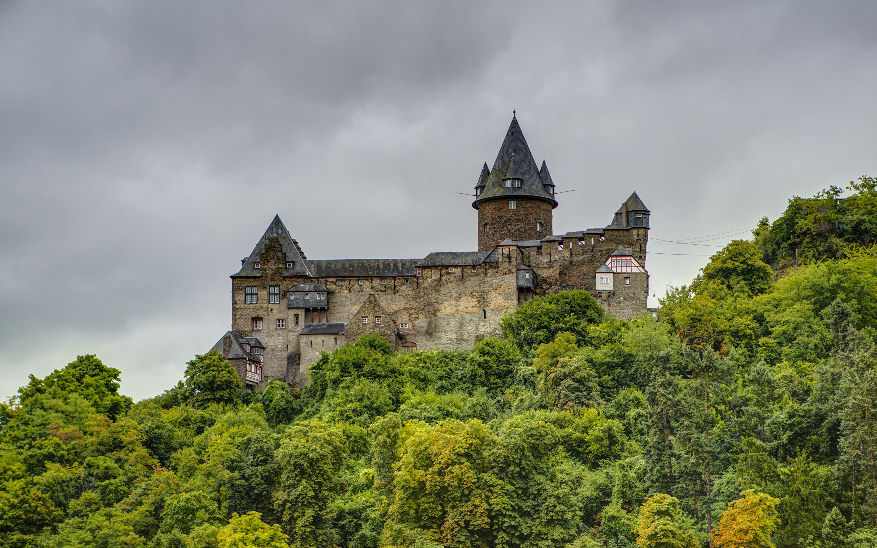 Обои замок, средневековая архитектура, здание, величественный дом, дерево, фото, заставка