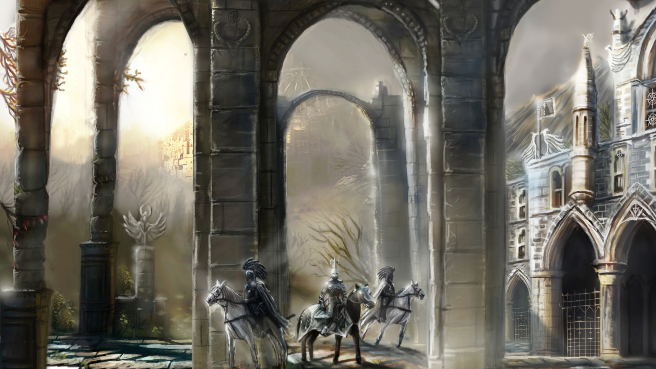 Обои 1280x720 фэнтези, рыцарь, спекулятивная фантастика, святое место, арка, HD, HDV, 720p, 16:9 картинка