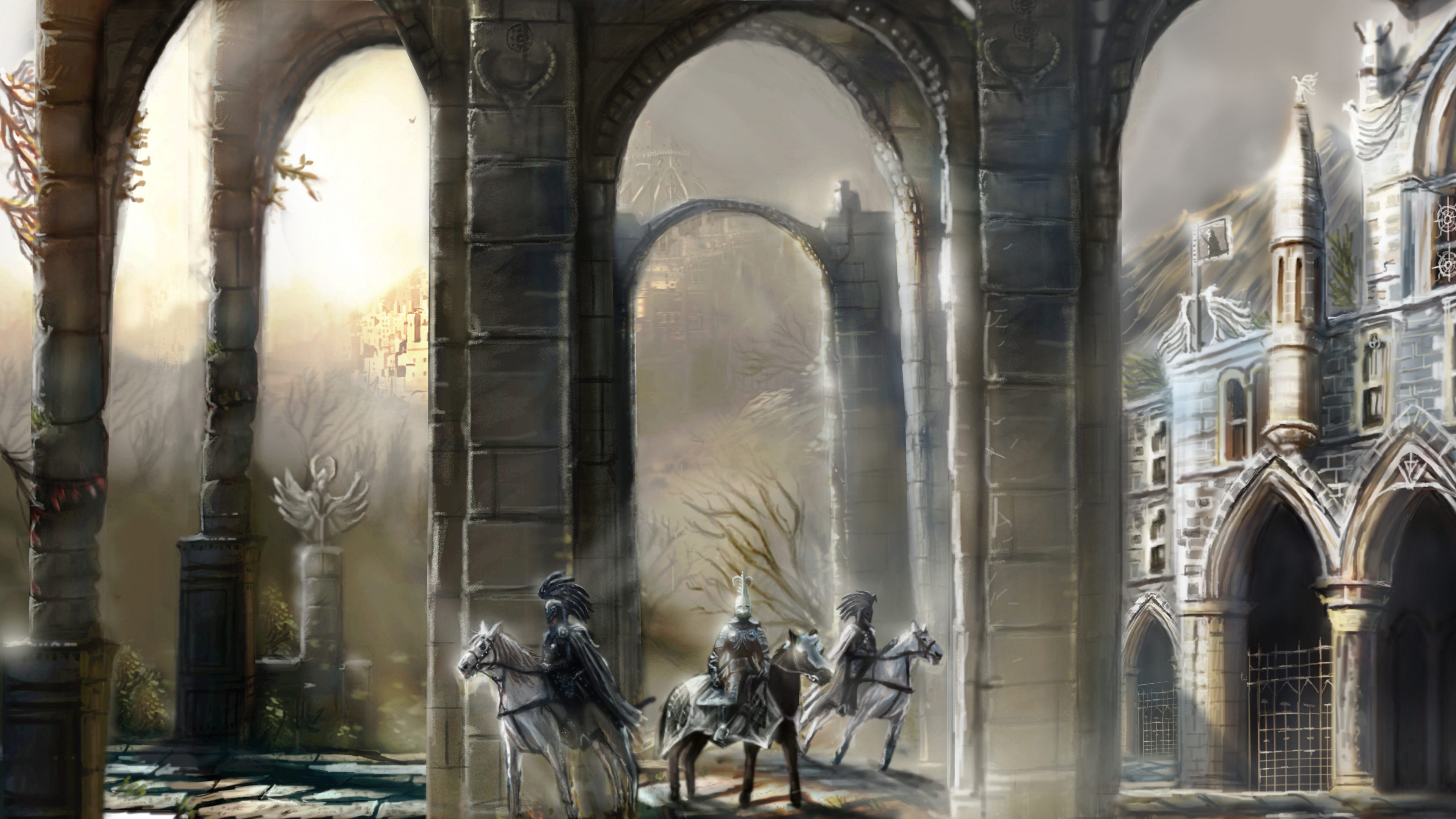 Обои 3840x2160 фэнтези, рыцарь, спекулятивная фантастика, святое место, арка, 4K Ultra HD картинка